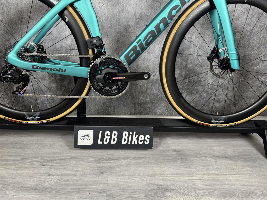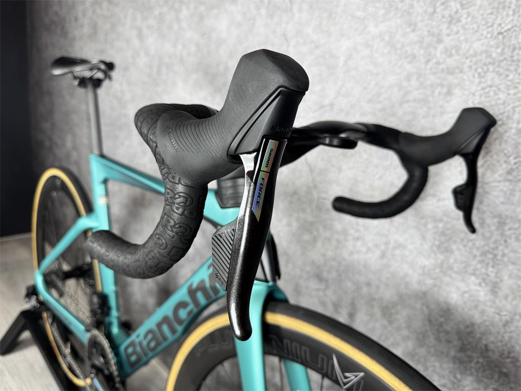 Zo goed als nieuw! Het Racemonster van Bianchi!! Deze fiets verkeerd in absolute nieuwstaat, nog geen 500km gebruikt!!Bianchi Oltre Pro Sram Force AXS Full Carbon, afgemonteerd met:- Sram Force AXS 2x12 Speed- Velomann Plutonium Carbon 50mm- RC Cockpit- Dubbelzijdige PowermeterNieuwprijs was €8340,-!!Fiets wordt geleverd incl. factuur, garantie!Verzenden of bezorgen mogelijk!!