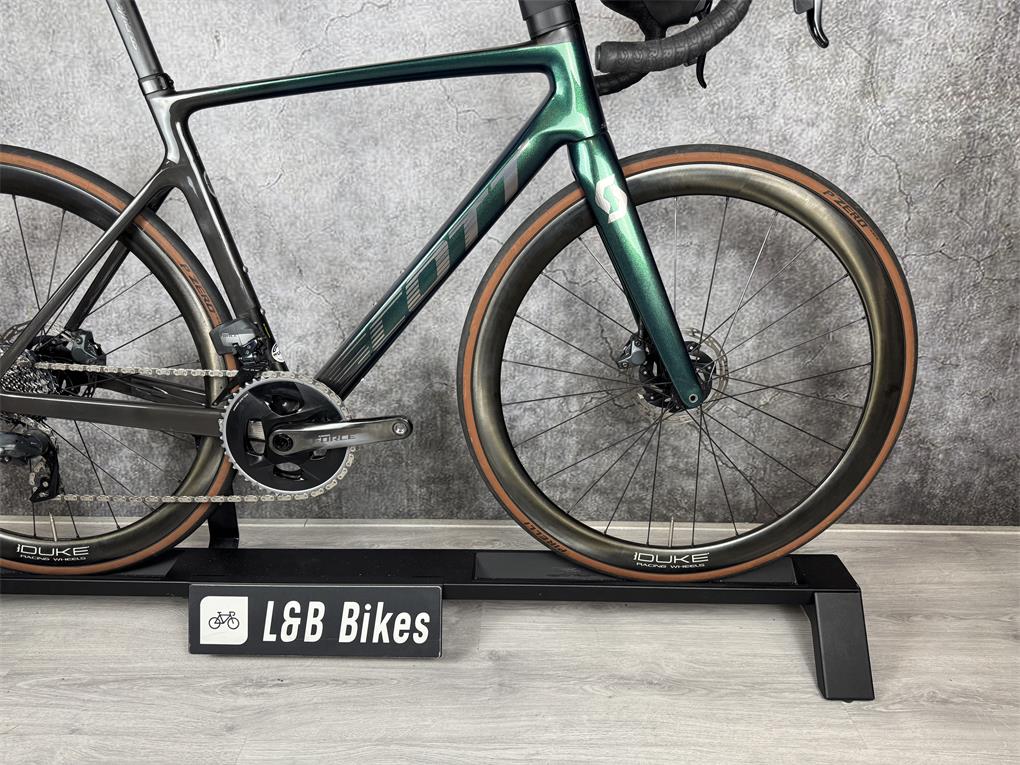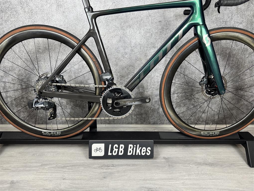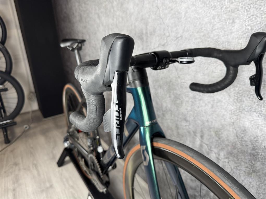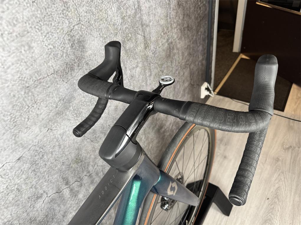 Zeer nette Scott Addict RC20, afgemonteerd met de elektrisch schakelende Sram Force AXS 2x12 Speed groepset.Geüpgraded met Duke Carbon Wielset met DT Swiss 240 naven twv €1599,-.