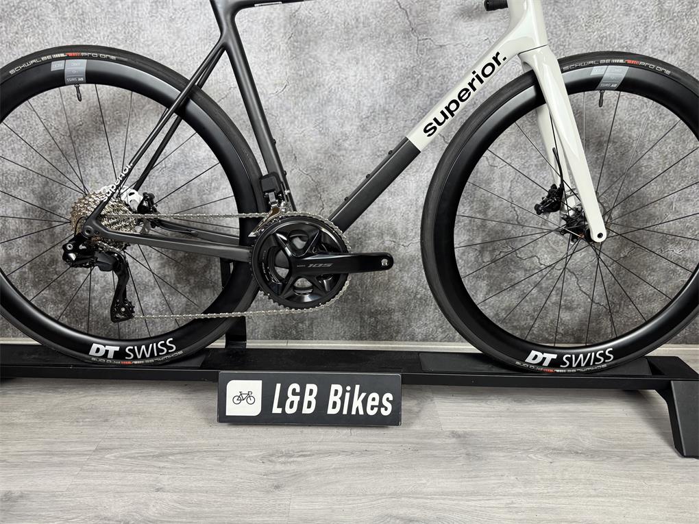 Nieuwe Superior RR 9.6, afgemonteerd met Shimano 105 Di2 2x12 speed groepset, One Carbon Cockpit en DT Swiss ERC 1600 Carbon wielset.Van €3799,- nu voor €2999,-Fiets wordt geleverd incl. factuur en garantie!